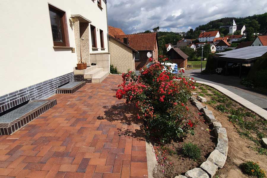 - Naturstein- und Pflasterarbeiten: Wir kreieren Wege, Terrassen und Einfahrten, die nicht nur funktional, sondern auch ein visuelles Highlight Ihres Gartens sind.
