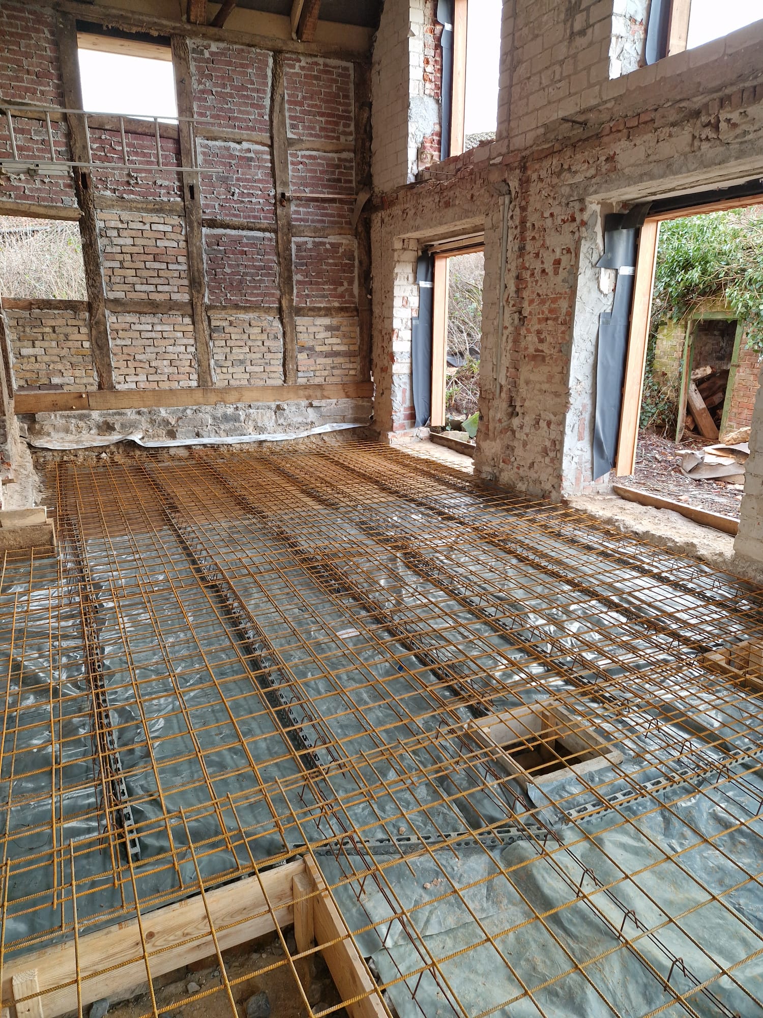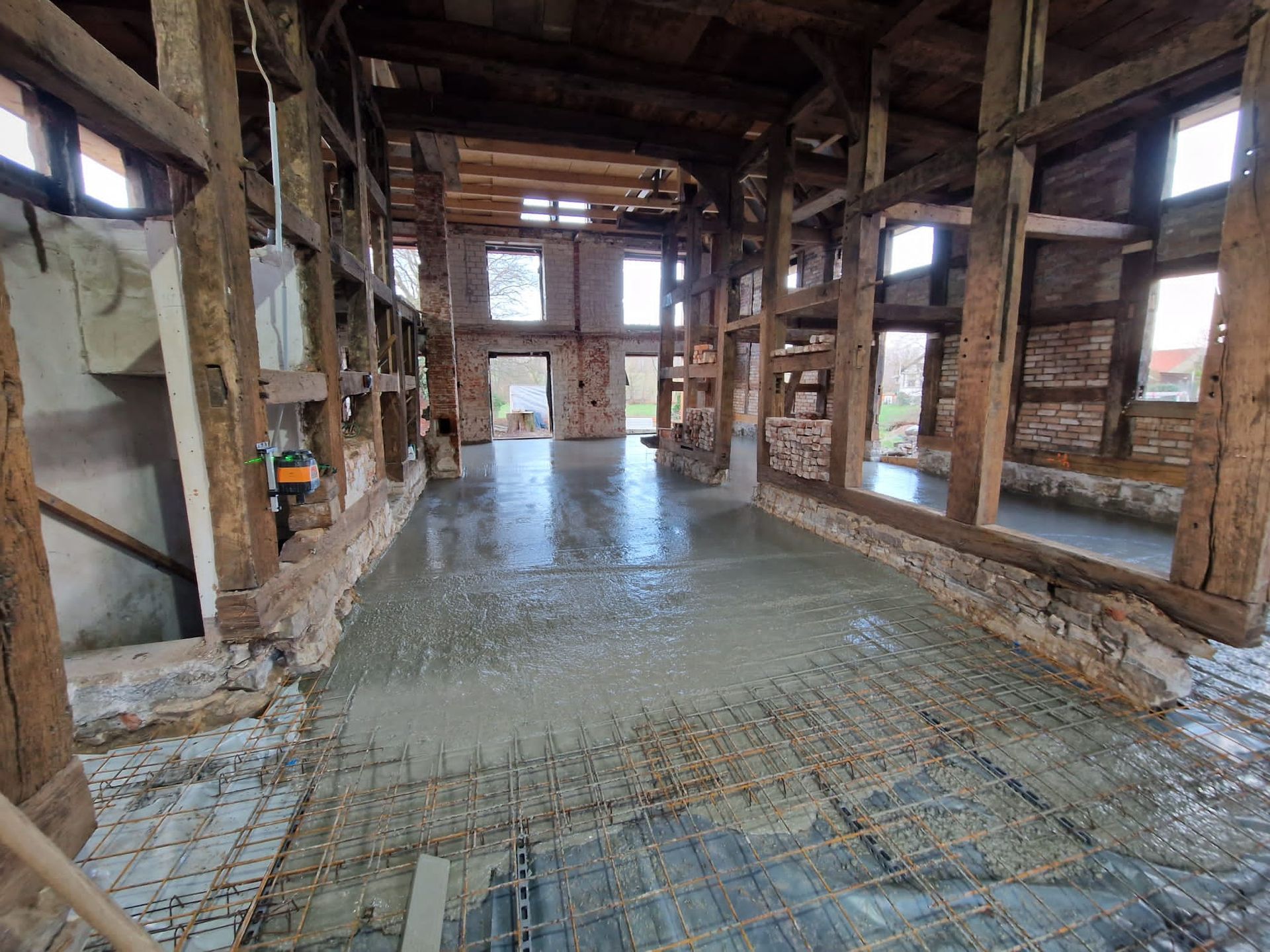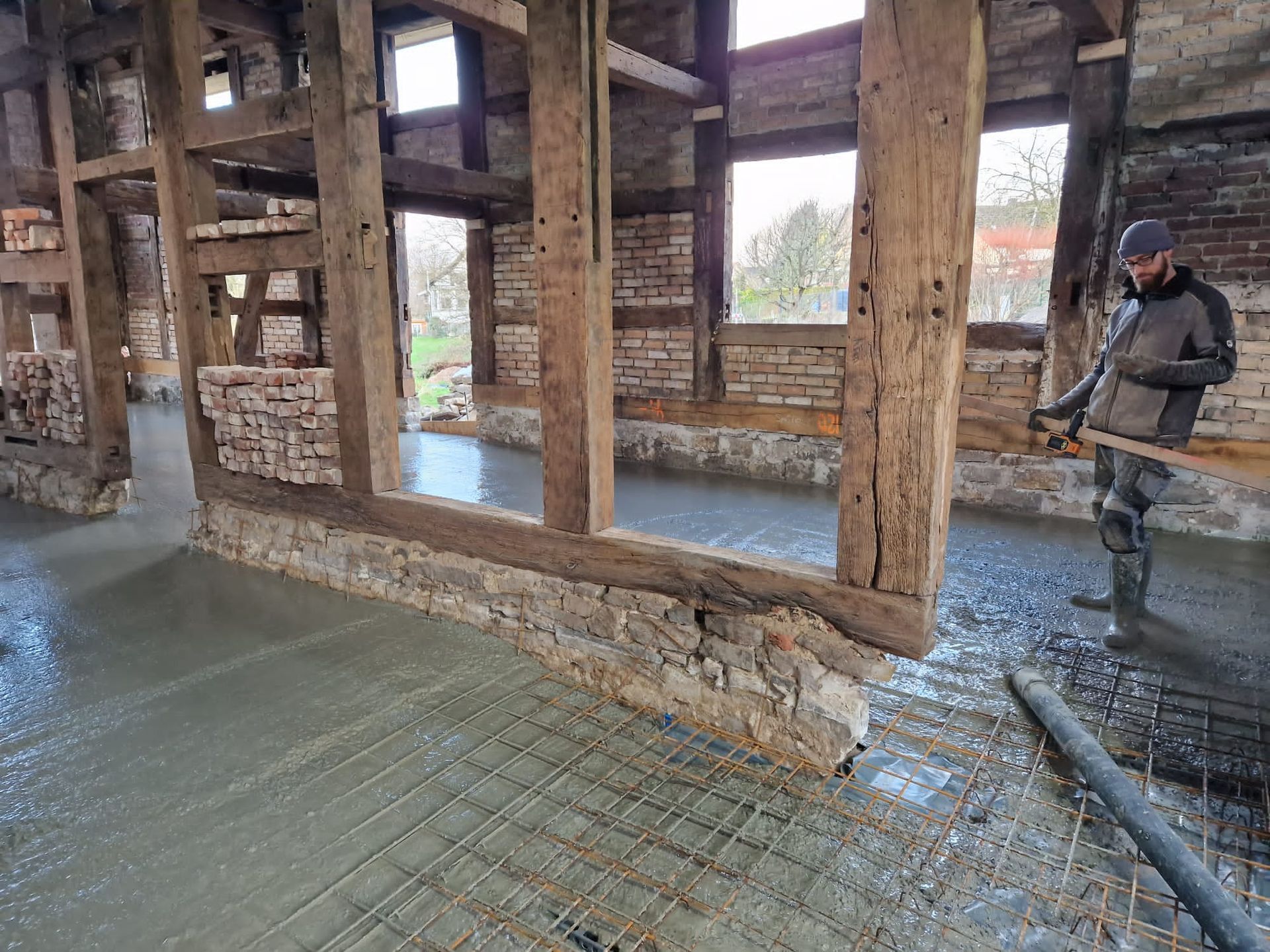 In Lemgo, einer Stadt bekannt für ihre Fachwerkhäuser, haben wir ein anspruchsvolles Projekt abgeschlossen: die Sanierung eines alten Gebäudes mit Schwerpunkt auf der Erneuerung der Kellerdecke. Der Prozess begann mit einer vollständigen Entleerung des Raumes, gefolgt von sorgfältigen Vorbereitungen für das Gießen der neuen Decke.